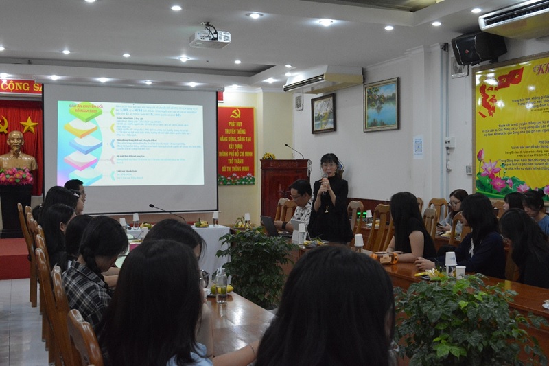 ThS. Nguyễn Trúc Vân – Giám đốc CSSF trình bày chuyên đề “Chuyển đổi số của TP. Hồ Chí Minh”. Ảnh: Khoa Kinh tế và Quản lý công