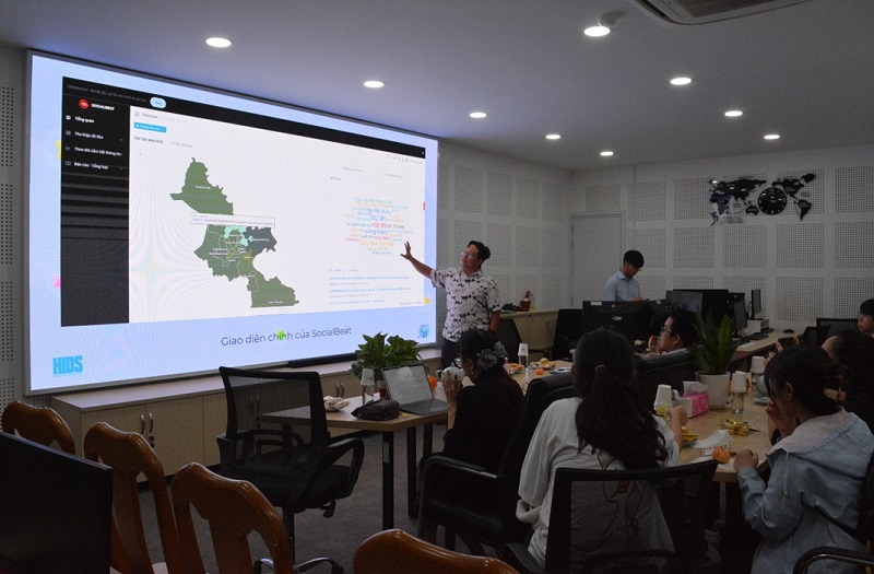 Anh Lê Quang Triều trình bày công cụ Social Beat về chủ đề Metro trên địa bàn TP.HCM.  Ảnh: Khoa Kinh tế và Quản lý công